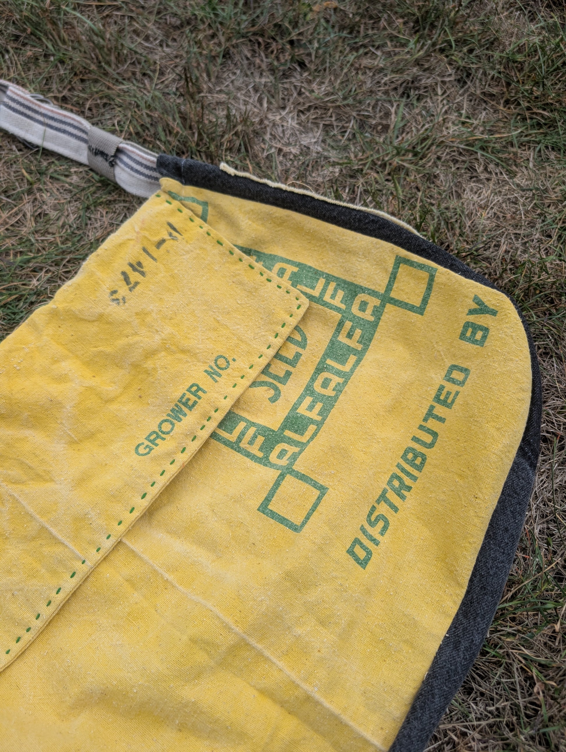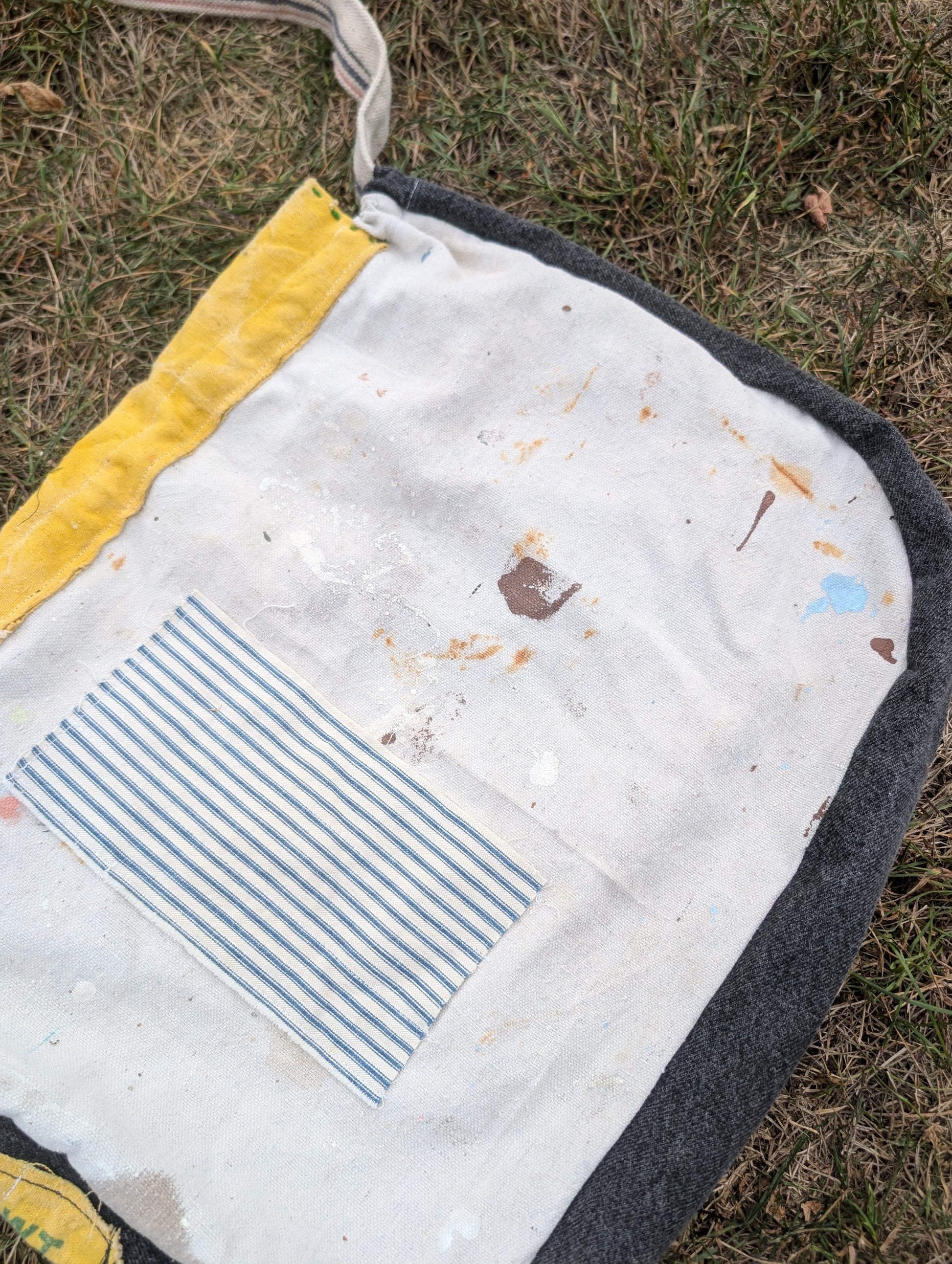 Feed Sack Denim Painters Cloth Ticking Stripe Cross Body Bag